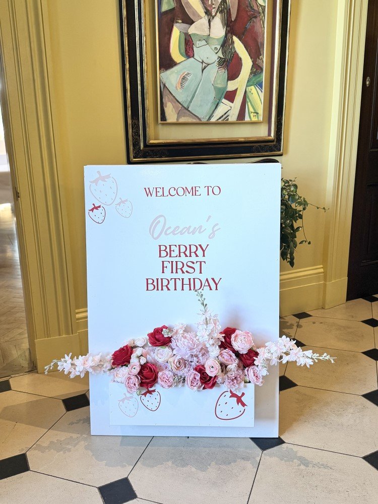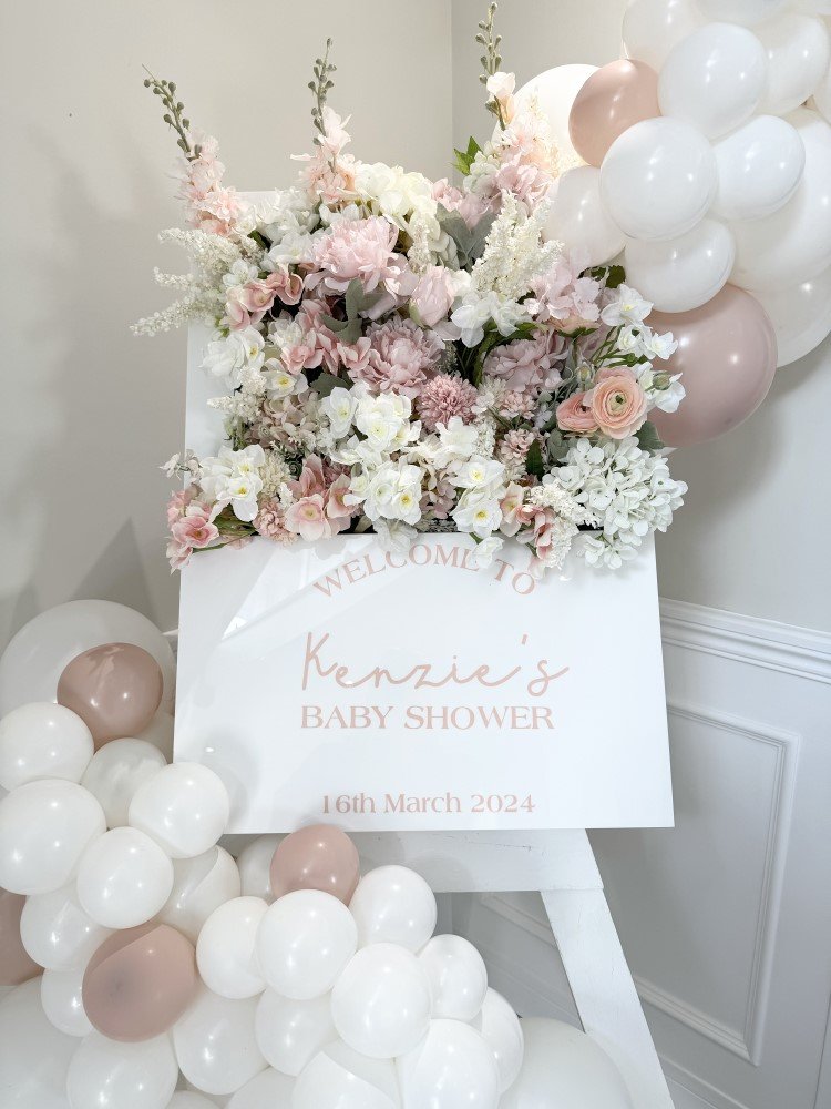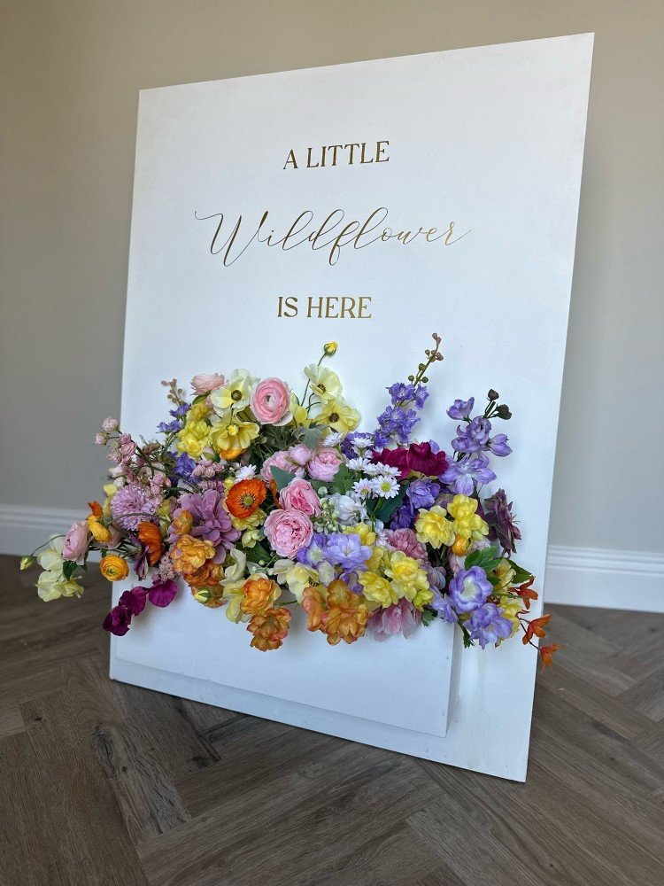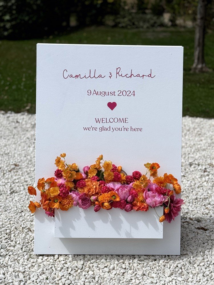 The A board is a perfect free standing board that can be personalised for any event, or with corporate branding. Add in the box frame, again personalised if required, with co-ordinating florals.